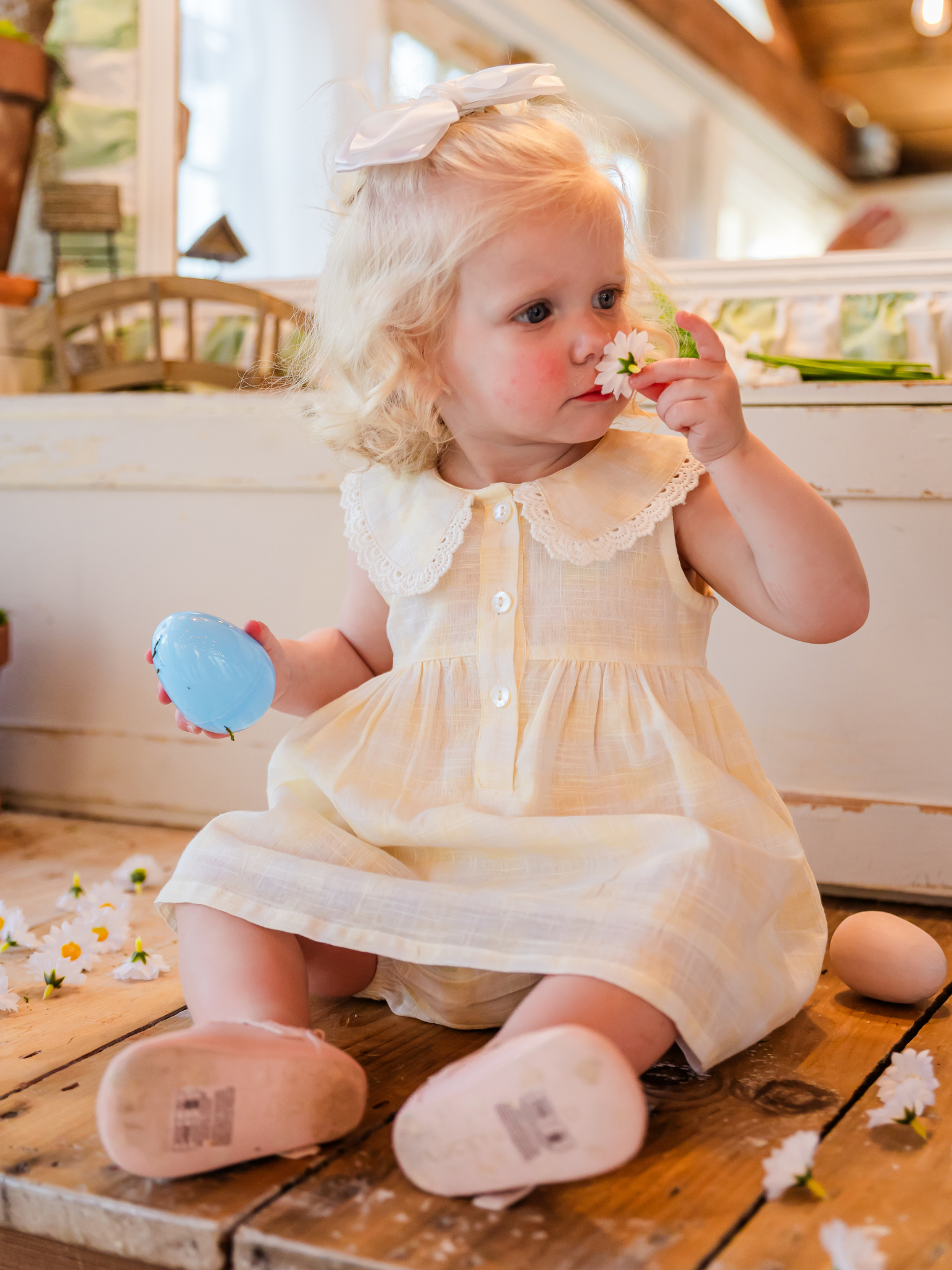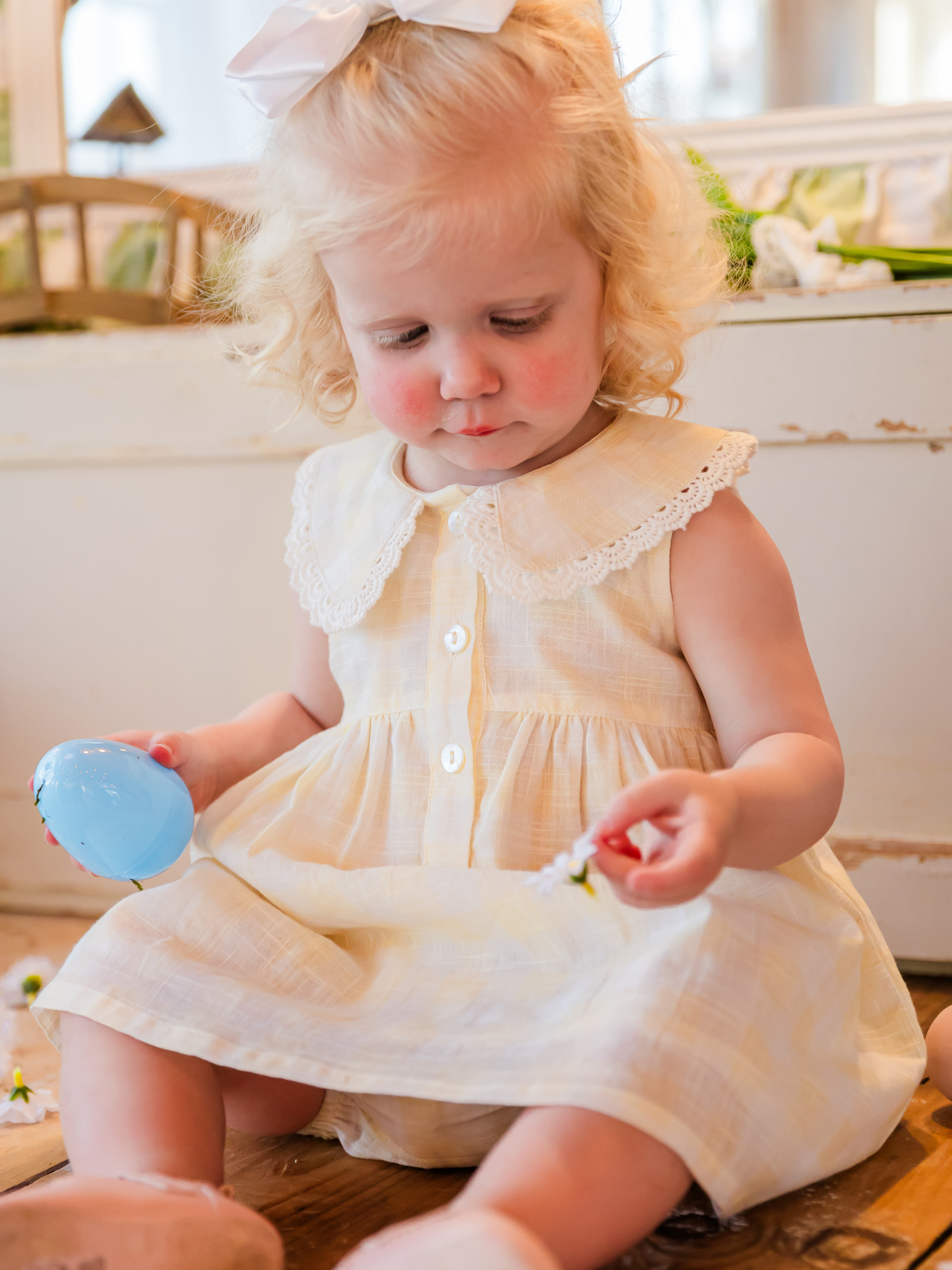 Yellow Check Collared Dress + Bloomer