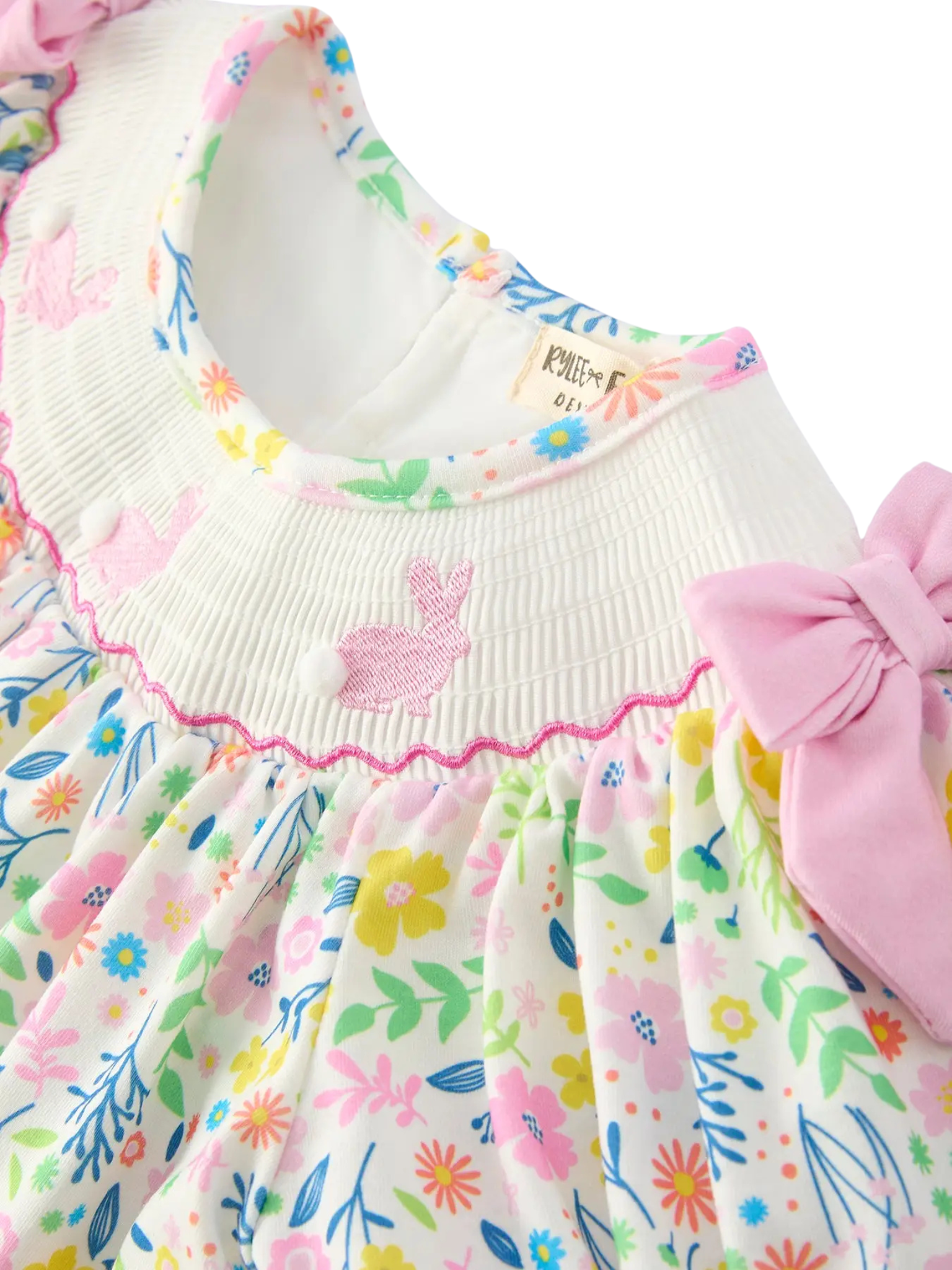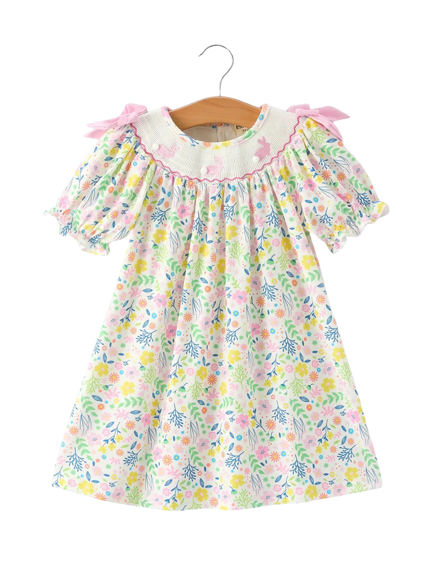 Bunny Pom-Pom Embroidered Floral Dress